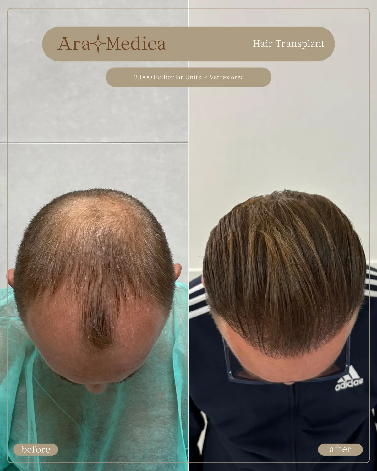 The techniques used at AraMedica are autotransplant methods, which means that the hair follicles implanted in the balding area come from the patient’s own scalp. This approach eliminates any risk of allergies or rejection.